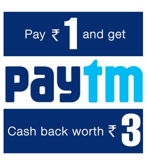 Hello Guys another paytm loot trick is coming out this time pay Rs 1 from your paytm wallet and get rs 3 cash back in your paytm account maximum 3 times means you can get Rs 9 cash back when you spend rs 3 .it's not bad at all ,so guys do't wait start looting ...